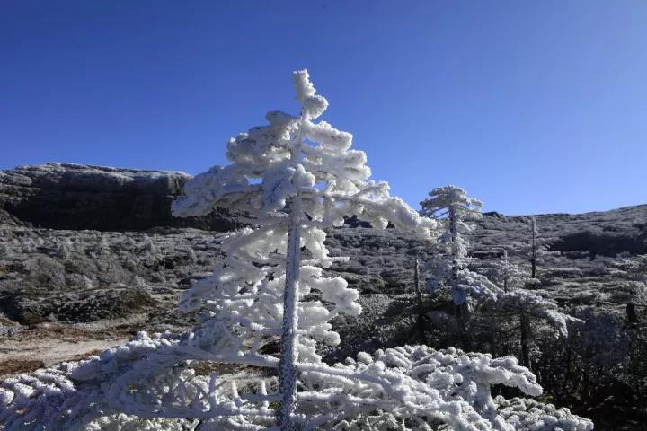 在海拔4000米的山上披上了银装